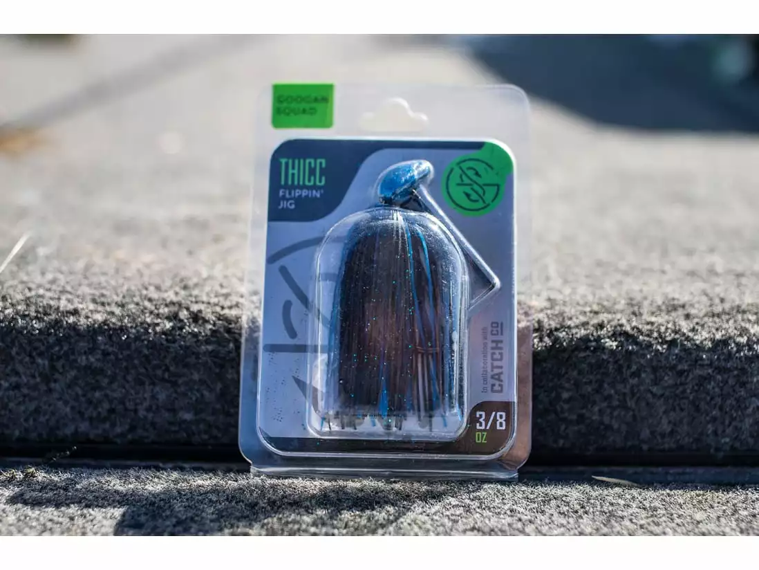 The Googan Squad Thicc jig is a flipping jig designed for use in thicker cover than other jigs can handle. The head is pointed, to go in and out of cover easier. Plus, the weed guard and hook are both beefed up for fewer snags and better hookups. Tie on the Thicc Jig whenever targeting thick shoreline laydowns or punching through emergent vegetation. Built around a heavy-duty hook finished off with a hand-tied skirt, the Googan Squad Thicc Jig is built for the mondos.