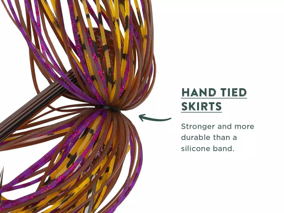 Pro Tips: Use the Thicc jig when you are fishing heavy cover, setting strong hooksets, or fishing around extra big bass. Once you detect a bite make sure to give a HEAVY hookset in order to drive this hook home. You should also really lock in your drag to help prevent the line from slipping when you set the hook.