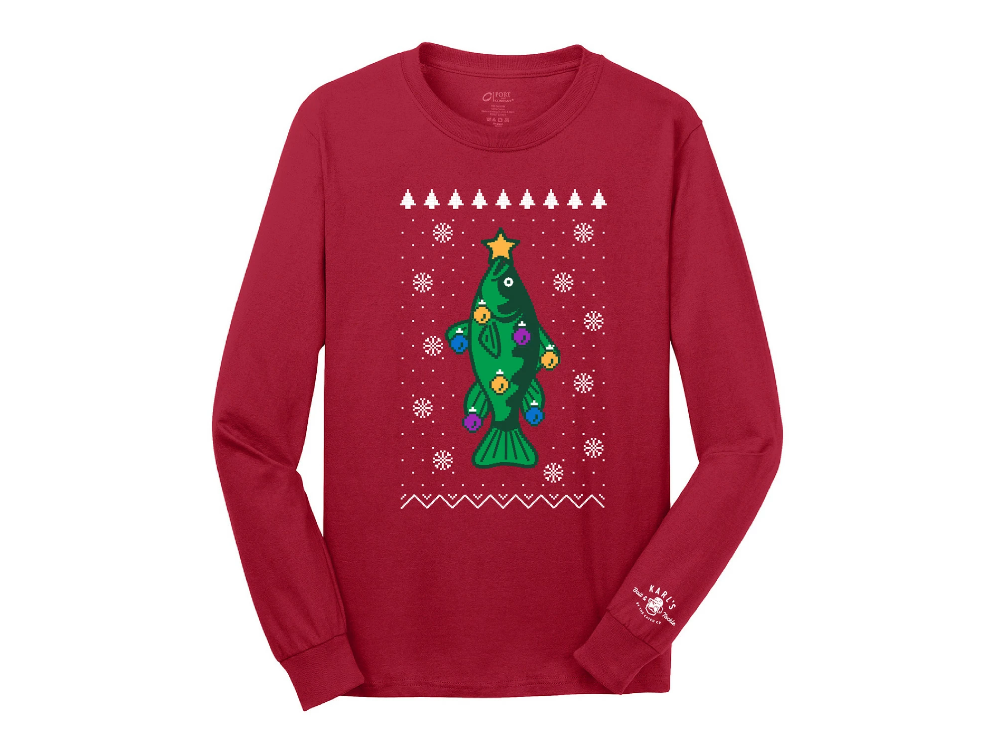 Get all of the fun, festive, goofiness of a holiday sweater, without any of the itching and bunching that comes with it. This Fishmas Bass Tree Shirt features a big tree , bass and loads of holiday joy. Perfect to wear to your holiday party, or out fishing during the holiday season.